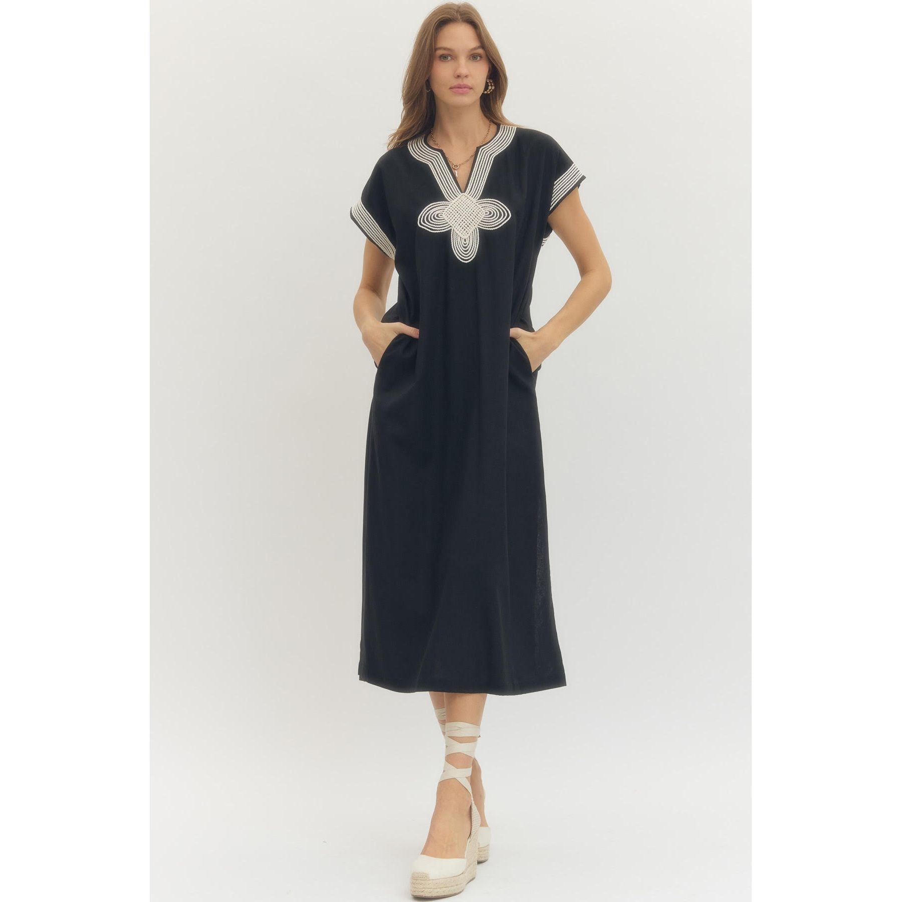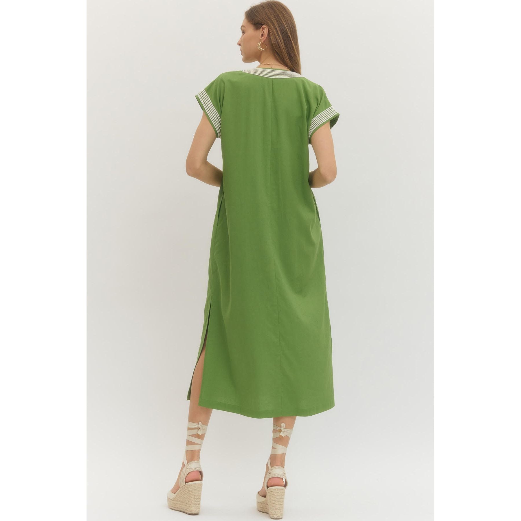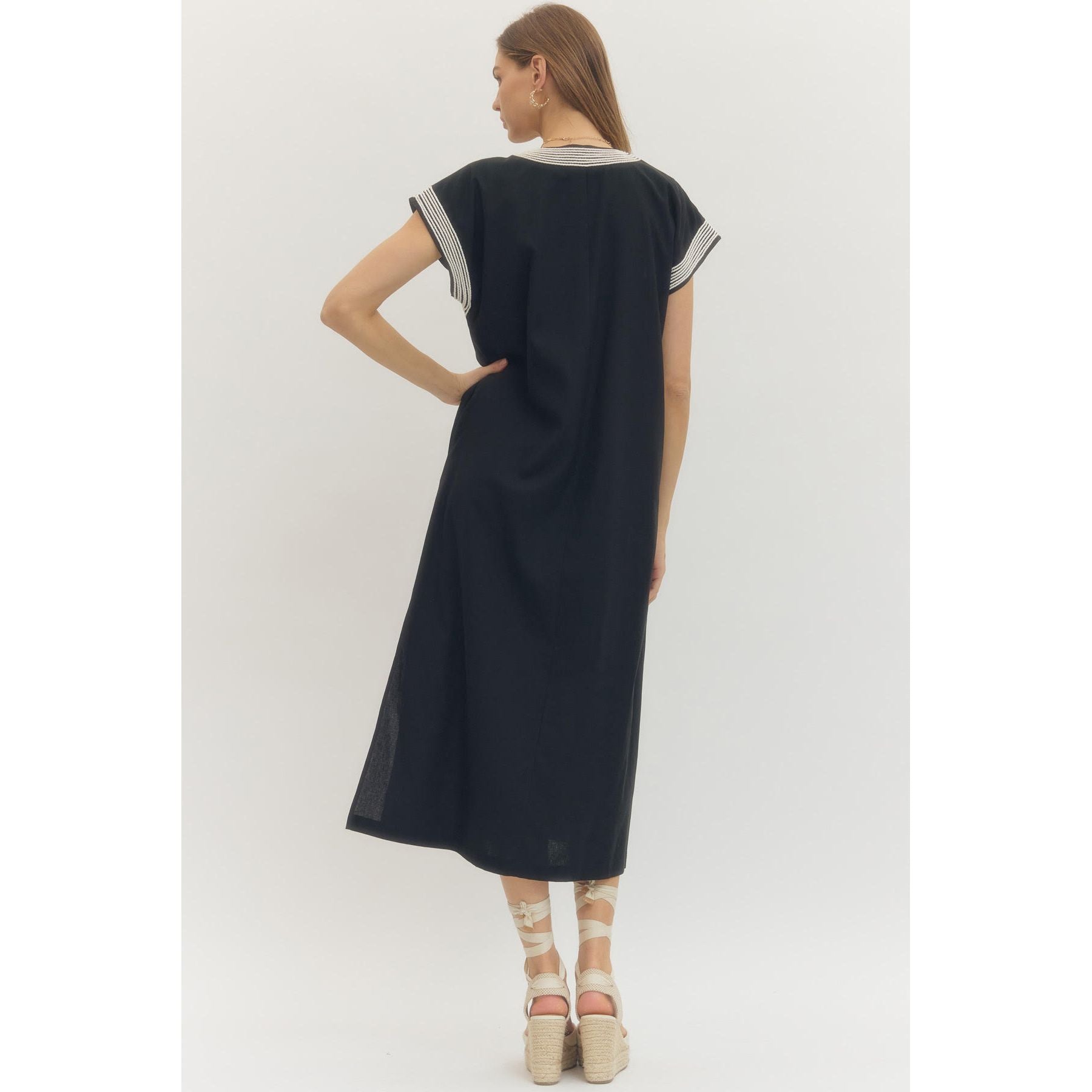 Effortlessly chic with a hint of vintage resort glamour, this linen-viscose blend dress is your warm-weather uniform—polished enough for lunch, easy enough for everyday.