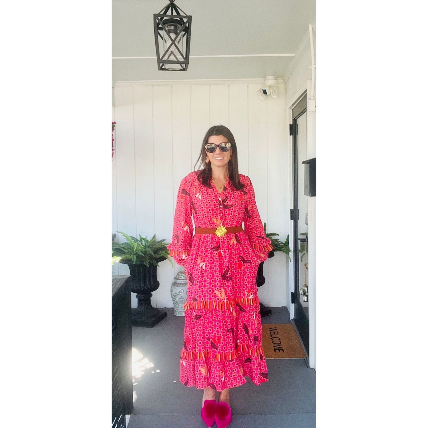 ADELE is our fave midi dress for any time of day or night! Stunning bespoke beetroot mixed Emily Lovelock print.