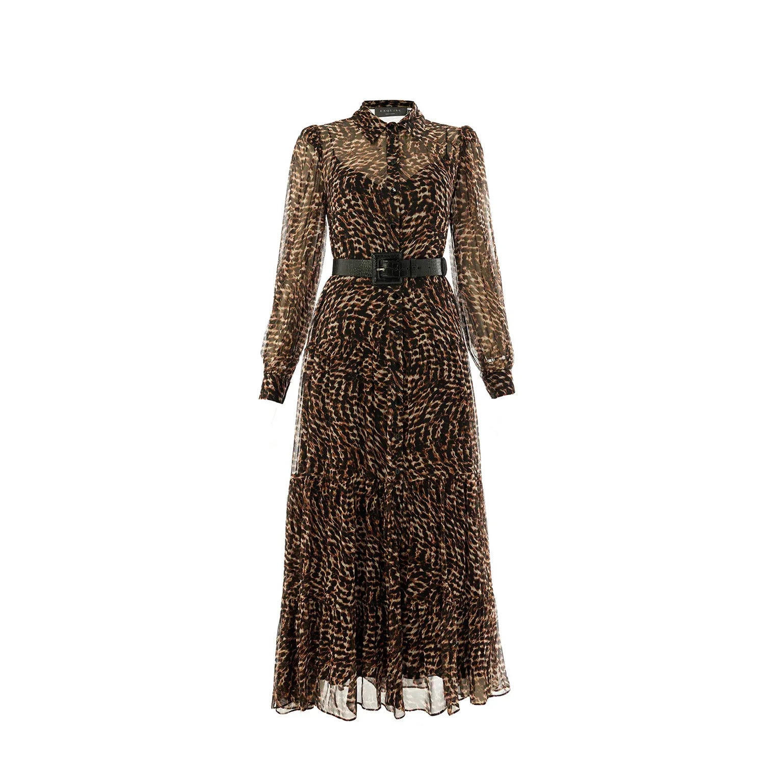 The Aliza Dress features a shirt collar, long sleeves, and lightweight drape with full lining for comfort.Color: Multi Color | Neckline: Shirt Collar | Sleeve: Long SleeveFabric: 100% Rayon | Lining: 100% Viscose