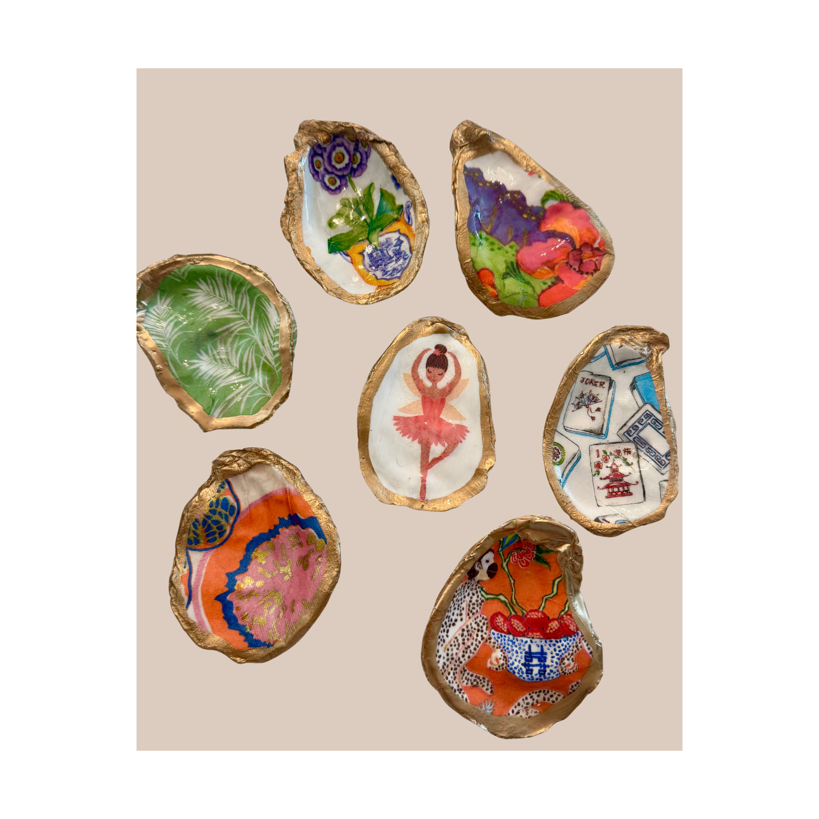 includes all supplies and instructions to make 5 beautiful, custom oyster shell ornaments ot trinkets dishes plus Mimosas and pastries.