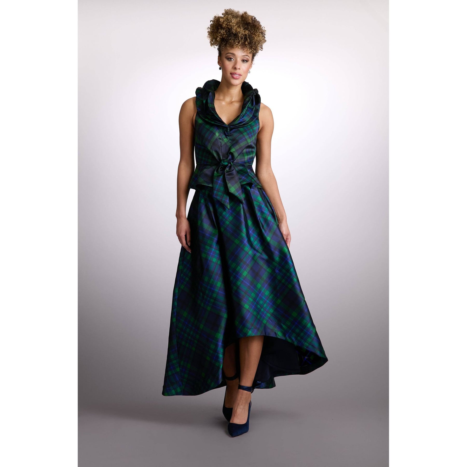 Make a dramatic entrance in this Muse high-low Mikado plaid ball skirt, where timeless elegance meets modern movement. Crafted from lustrous Mikado fabric in a striking plaid pattern, the voluminous silhouette cascades into a sweeping high-low hem that’s made to be seen. MIKADO This skirt is fully lined and has pockets.