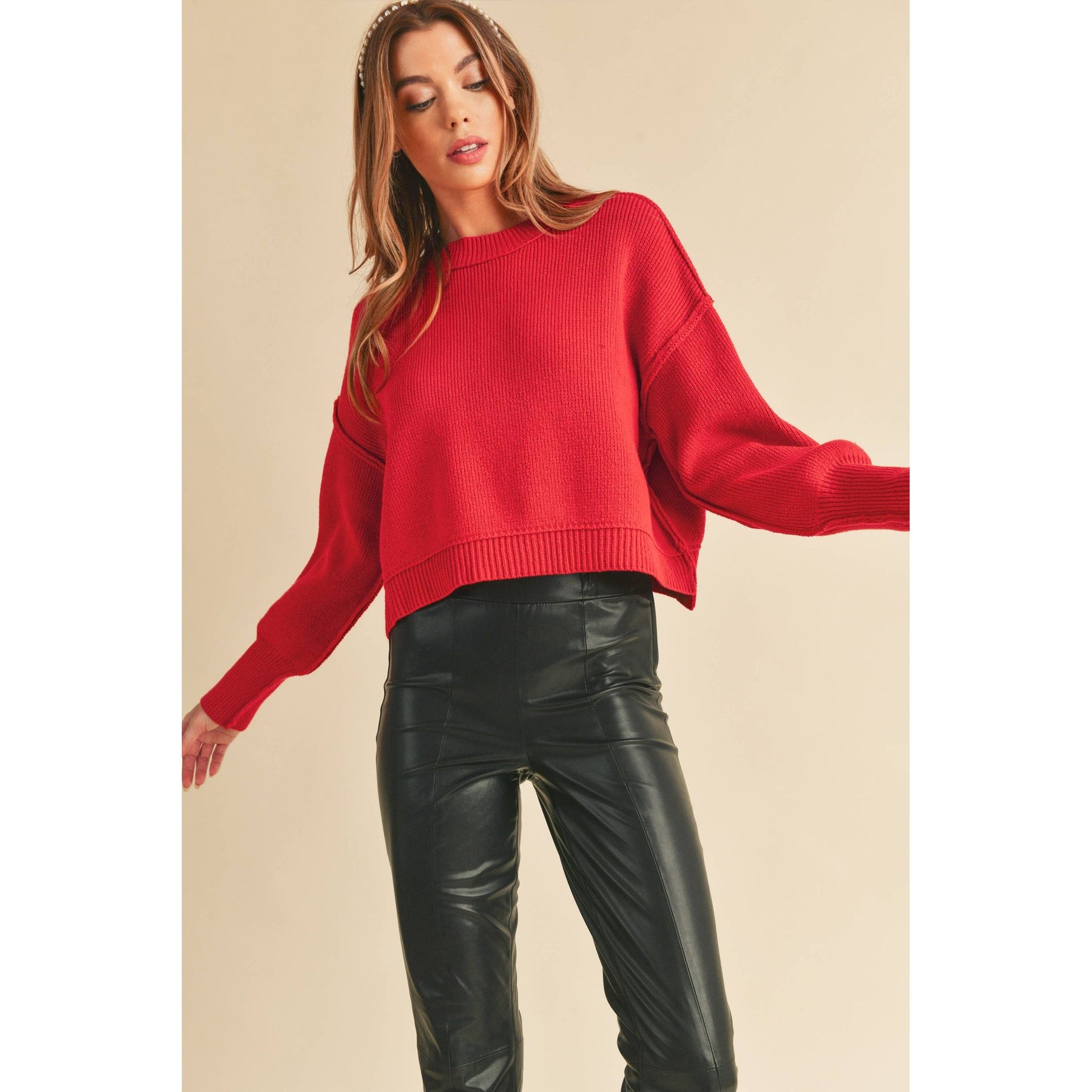 Adorable pullover sweater with a boxy slouchy silhouette and slightly cropped waist, the Regina sweater is the all-around staple piece in her wardrobe that can be thrown on while on her way to the gym or a girls not out with friends.