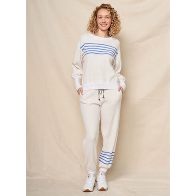 Oversized Waffle Crewneck Stripe -Blue/Oyster
